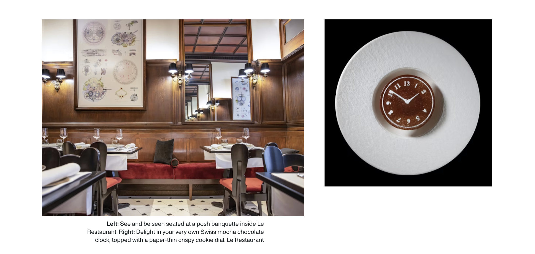 How to get it: Le Restaurant opened last November on rue du Rhône and was awarded a Michelin star within a year. Book a table online and rub elbows with the upper echelon of watchmakers and their collectors, regardless of what’s on your wrist.