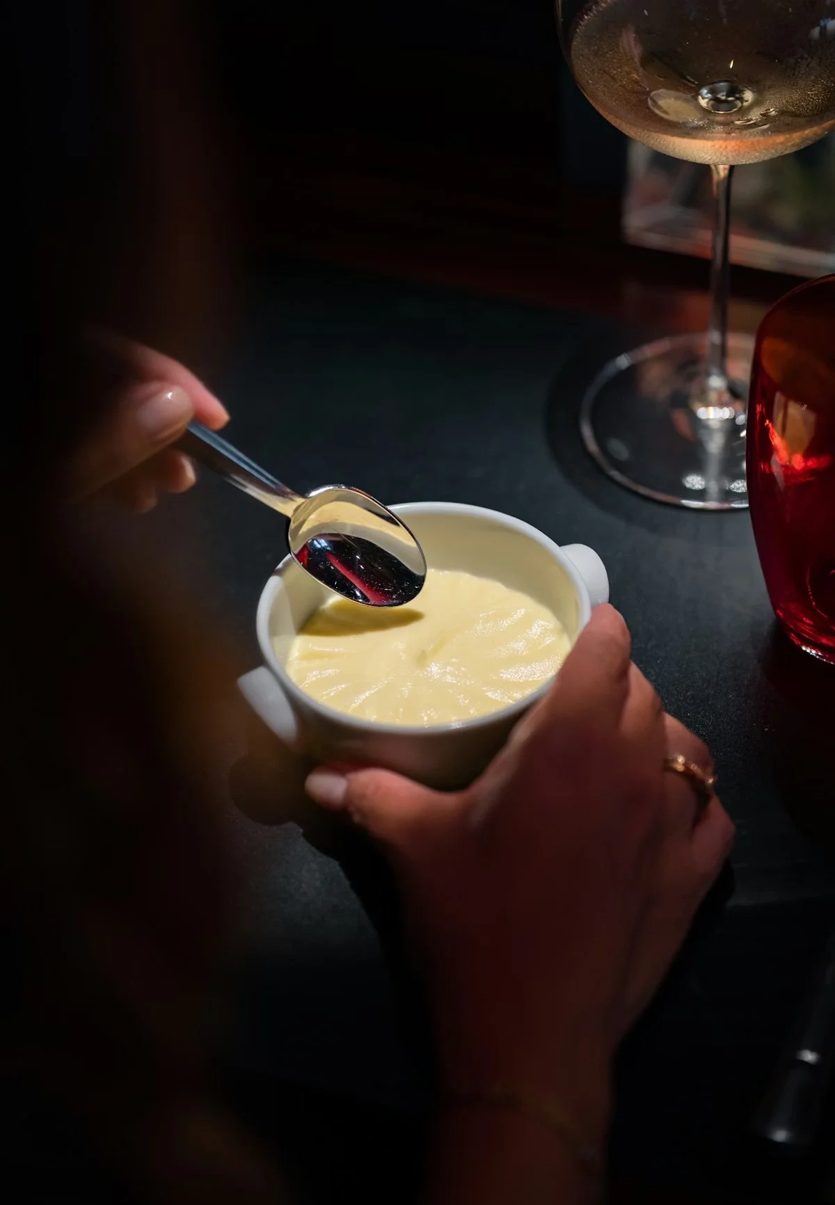 Mashed potatoes at L’Atelier Joel Robuchon. The Woodward Hotel